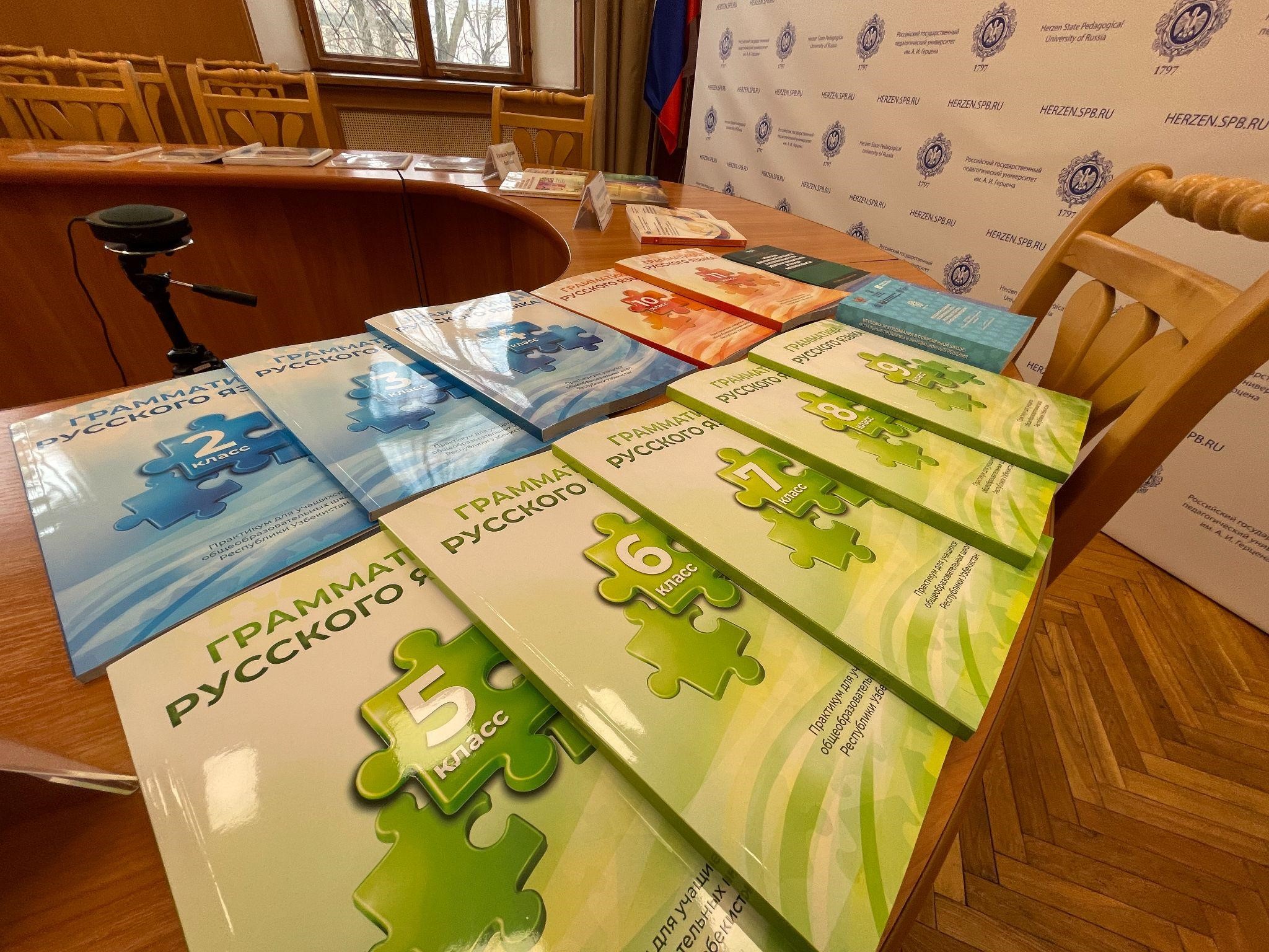 Так, для учащихся 2‒11-х классов Узбекистана Герценовский университет, активно включенный в образовательный проект «Класс!» («Зўр!»), подготовил линейку грамматических пособий. Также издан сборник трудов III Российско-узбекской научно-методической конференции «Методика преподавания в современной школе: актуальные проблемы и инновационные решения». В него вошли более 160 публикаций по 9 тематическим направлениям: биология, география, информатика, математика, методика начального образования, русский язык как иностранный, управление образованием, физика и химия.