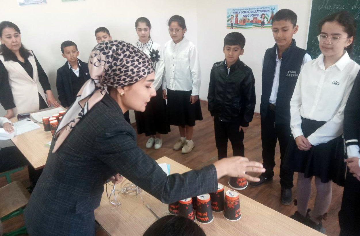 Методист проекта «Класс!» («Зўр!») Наталья Кытина провела в 4 классе мини-олимпиаду по русскому языку, включавшую задания пригласительного этапа Всероссийской олимпиады школьников, с целью привлечения узбекистанских учащихся к олимпиадному движению в России.