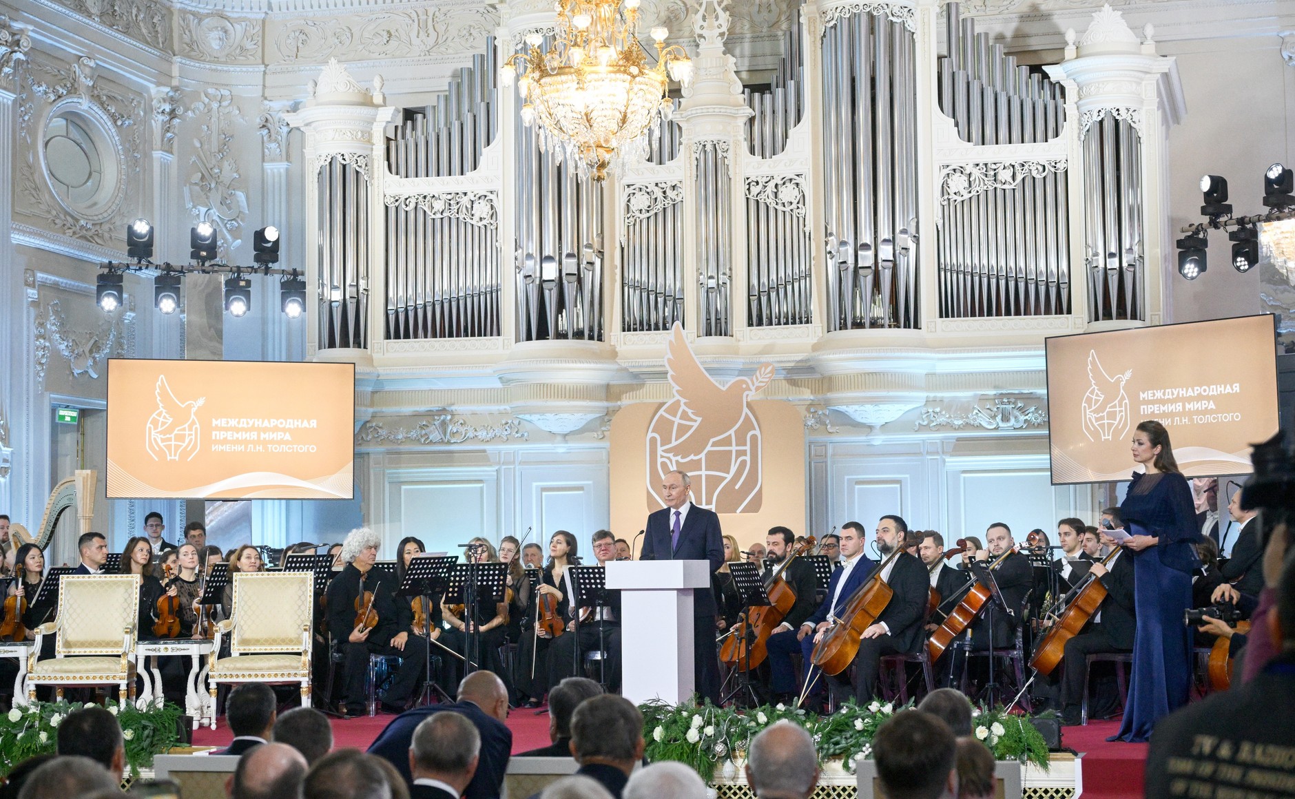 Владимир Путин обратился к гостям торжественного мероприятия: «Премия, названная в честь Льва Николаевича Толстого, была учреждена недавно. Но эта инициатива оказалась весьма востребованной, имеющей большой общественный и международный резонанс. Она призвана содействовать объединению вокруг благородных идей миротворчества, укрепления дружбы между нациями, защиты прав и свобод человека, формирования справедливого многополярного миропорядка, в основе которого лежат принципы суверенного равенства и уважения законных интересов друг друга, верховенство международного права».
