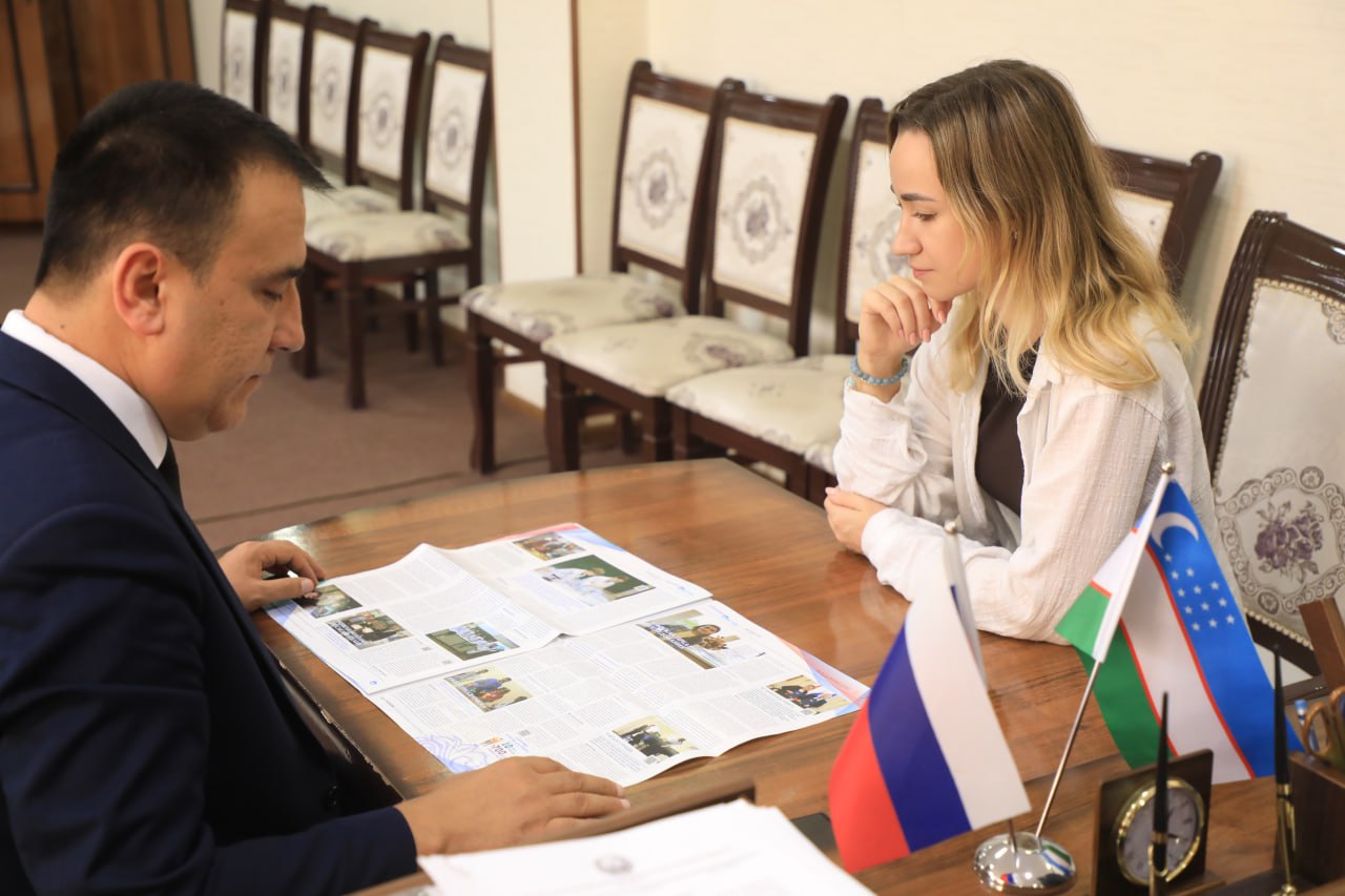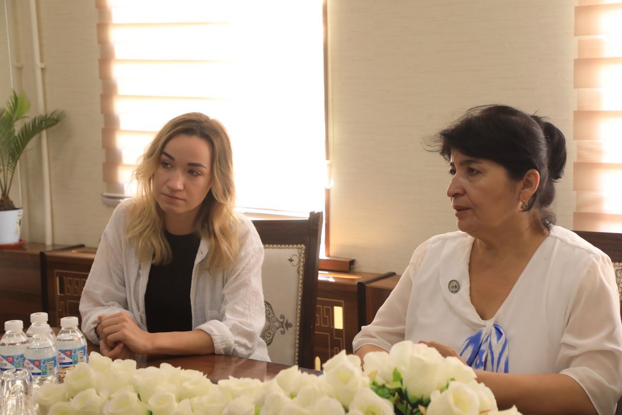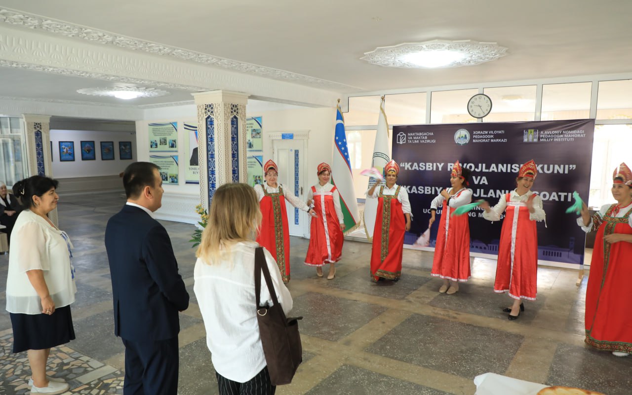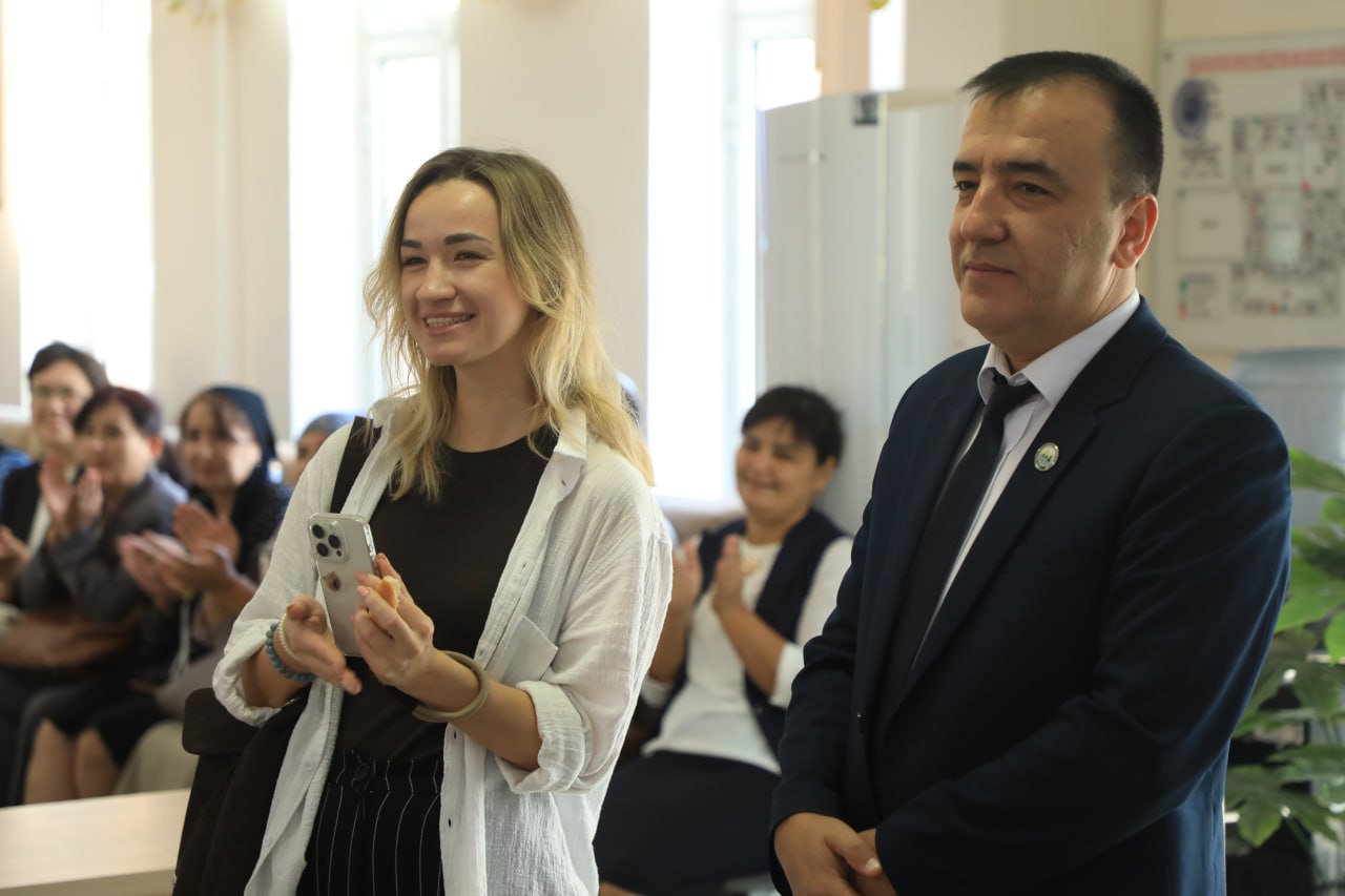 Методиста проекта «Класс!» («Зўр!») Катерину Старостину в Хорезмском областном центре педагогического мастерства встретили русскими частушками, хлебом и лепёшками.